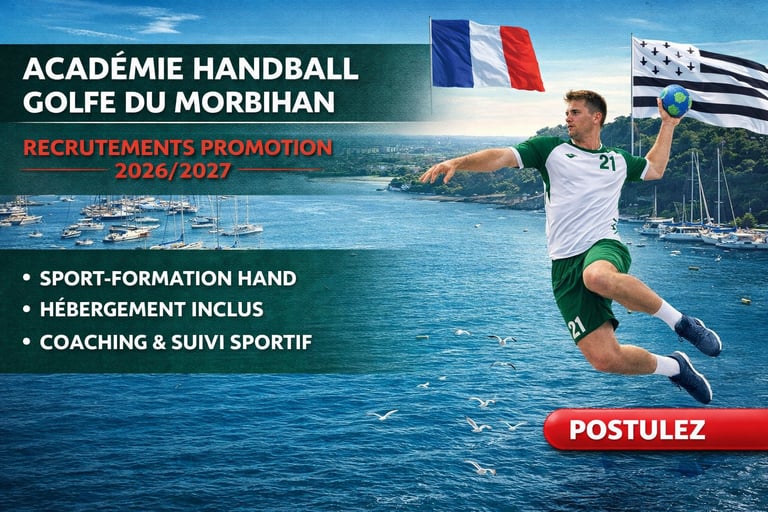Rejoins notre académie de handball au cœur de la Bretagne pour une année d’entraînement intensif en immersion totale.